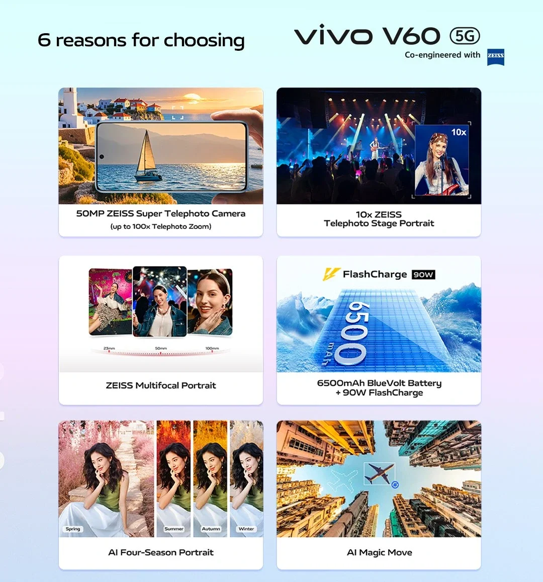 Specification: Vivo V60 5G (512GB/12GB; 50MP Triple Camera; 6500mAh)